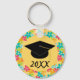 This cute class pride or graduation gift has grad hat logo with room for a custom year date on flowered keychain keepsake for the graduate.