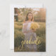 Add your favourite photo, graduation announcement, and party invitation on the reverse side by clicking the "Personalise" button. Featuring a full-frame vertical photo with the word "graduate" in bold script.