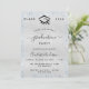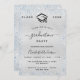 A modern, elegant and minimalist graduation party invitation. Faux silver metallic looking background decorated with light blue faux glitter dust. Personalize and add a name, year and details. Black colored letters.
