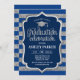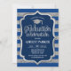 Graduation party invitation for men or women. Elegant invite card in navy blue and silver. Modern simple design featuring stripes, a cap, faux glitter silver and typography script font. Perfect for a stylish graduation celebration. Printed Zazzle invitations or instant download digital printable template.
