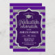 Graduation party invitation for men or women. Elegant invite card in purple and silver. Modern simple design featuring stripes, a cap, faux glitter silver and typography script font. Perfect for a stylish graduation celebration. Printed Zazzle invitations or instant download digital printable template.