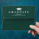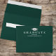 This design features graduation graduate grad party, a modern mortar board cap hat, a basic 5x7 a7 envelope size, a dark forest green simple minimalist minimal, a traditional mortarboard mortar board, with a return address back flap printed, a plain clean simplistic minimalist, a graduation party invitation envelope, a graduation announcement envelope, a dark forest green grad party envelope