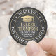 Add an elegant personalised touch to college or high school graduation thank you cards and party favours with black, white and gold round stickers / envelope seals. All text is simple to customise. Design features a black faux brushed metallic background, faux foil mortar board cap, and modern typography. Please note that gold is printed colour, not metallic foil. Text includes class year, school name, and an optional line for degree, honours, or favourite inspirational quote. To use as round return address labels on invites or thank you notes, change the curved text to a name and address. Congratulations to the graduate!