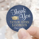 Graduation Thank You Script Brushed Navy Blue Gold Classic Round Sticker