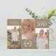 This design features graduation graduate grad party invitation, with a 3 three photo picture template, a class of your year with mortarboard elegant modern, mortarboard tassel laurel leaves wreath, with a fancy calligraphy script typography, great for high school or college commencement university announcement cards, a multi-photo collage layout with a minimalist minimal, trendy stylish brown, tan landscape design, simple graduation party invitation.