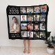 Black graduation keepsake fleece blanket featuring a 17 photo collage of the graduate through their school years and their name in a modern white typography. Add your personalised captions under each photo.
