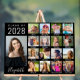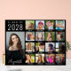 Black acrylic graduation party welcome sign and keepsake featuring a 17 photo collage of the graduate through their school years and their name in a stylish white script. Add your personalised captions under each photo.
