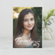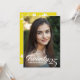 This charming graduation invitation captures the joy and achievement of the occasion with a personal touch. The front of the card features your favourite photo of the graduate, with the graduation year elegantly displayed in a graceful brush script with the graduates name displayed below. On the back, the card has a vibrant yellow background, bordered at the top and bottom by a darling white floral border that add a touch of timeless elegance. Add your event details, providing guests with all the necessary information in a clear and stylish format. This invitation perfectly balances personal celebration and formal elegance, making it a cherished keepsake for this milestone event.