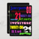 Trendy, cool, modern 21st invite for him or her with multi colours and fonts.