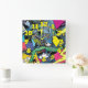 Graffiti Background w/Graffiti Numbers-09 Square Wall Clock