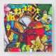 Graffiti Background w/Graffiti Numbers-13 Square Wall Clock