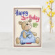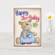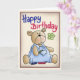 A cute country art bear in blue dungarees, holding a colour pencil. Looks like he wrote the birthday message on the wall ... Customise by altering the verse and/or adding your own closing message. Matching postage stamp available as well!