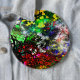 Painters Wall becomes a cosmic collection of the painters drop cloth paint splatter, in a display of creativity paint flies everywhere in this abstract digital art graffiti painting in a controlled mess of colours, shapes and silhouette trees.