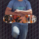 Retro style 80s graffiti scribbles graphics onto skateboards.