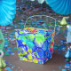 This digital graffiti has all the vivid colours of salt water fish. Multiple shades of blue are mixed with yellow, orange, purple, lime green, pink, aqua, black. The various textures and opacities give the design depth.