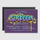 A bright and messy design for a teenager. Boys birthday invitation in purple and blue.
