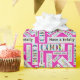This contemporary gift wrapping paper features a vibrant multicolor pattern, with cut-out words from the message 'Have a totally cool birthday' on a bright magenta pink background. The pattern within the words has a colourful graffiti effect.