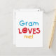 Gram Loves Me T-shirts, cards, stickers, bodysuits bags, and more with colourful red, yellow, and blue text and heart design. These Gram Loves me apparel and gift items will make gram smile!