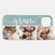 Celebrate her grandma status with this special phone case featuring three treasured photos of her granddaughter, grandson, or grandchildren. The nickname "Gram" appears along the left side in elegant calligraphy script lettering for a unique personal touch.