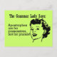 Grammar Lady Says: apostrophes are for possessives, not plurals! Grammar Lady wants you to remember that if you're just pluralising, don't add the apostrophe! Simple single colour design with text and face.