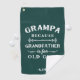 Grandfather is for old men, so he's Grampa instead! This awesome quote design is perfect for Father's Day, birthdays, or to celebrate a new grandpa or grandpa to be who loves to golf. Design features the saying "Grampa, because grandfather is for old guys" in white lettering on a hunter green background. Personalise with his initials along the bottom for a custom touch.
