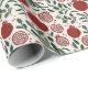 Granada: Spanish Pomegranates is a repeating pattern in rich red, burgundy, green, blush. An elegant and vibrant design of repeated leaves, whole and halved pomegranates, and ruby red seeds, reminiscent of an orchard in Spain.