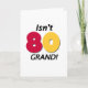 Black, red, and yellow text design for the 80th birthday that reads "Isn't 80 Grand!".