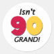 Black, red, and yellow text design for the 90th birthday that reads "Isn't 90 Grand!".