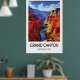 This Grand Canyon National Park travel poster presents a thoughtfully illustrated view of one of America’s most recognized landscapes. The design emphasizes the canyon’s layered rock formations, expansive desert vistas, and natural color variations, drawing inspiration from classic travel and national park artwork.
