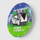 Purchased this online and it got delivered quickly. It was a present for my Dads 70th birthday. He loves clocks so decided to get him one with something written on it. Battery went in and it started working straight away. Dads had no issues with it. Printing was just how it came up online.