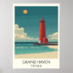 Grand Haven Michigan Vintage Lighthouse Beach Art Poster