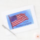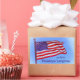Image of Old Glory, flag of the USA, flying free in a blue sky, with Latin words "ex libris" (from the library) and the owner's name you enter.