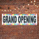 Grand opening event sign with attention-getting colourful pennant border, confetti background, and large type. Business Grand Opening Banner to advertise that a new business is open or at a new location.