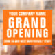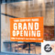 Retail sale signage window cling banner, inform customers of your opening and help welcome customers in with this grand opening banner in orange and white. Background colour can be changed to suit your business colours. Ideal to generate foot traffic into your new business and alert customers you are open. Customise with your own business name and message details.