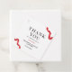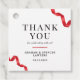 Modern and elegant grand opening favour tag featuring a flowing red ribbon