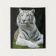 Beautiful photo of a white tiger is featured on this 34" x 40" tapestry. This small size tapestry has hand sewn edges and the printing technique allows for bold and vivid colours that won't fade. Use for a wall hanging, table covering and more or give as a gift for birthdays, graduations, Father's Day and tiger lovers!