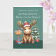 Getting into the "Moose-tletoe" spirit has never been more fun! This festive card for your grandchildren features a young moose tangled in colourful Christmas lights, sitting beside a snow-dusted tree with gifts tucked underneath. The candy cane-pole sign reading "Joy" adds to the playful holiday cheer. Inside, a heartfelt message reminds them of the laughter and love they bring to this magical season.