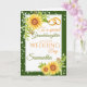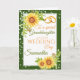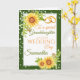 A lovely Granddaughter Bride wedding Day Congratulations card with watercolor floral yellow sunflowers, foliage, gold rings and string lights with a dark green border. The perfect way to say congrats to your bride Granddaughter and wish her all the best on her marriage. Personalise with name and inside message.