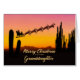 A Christmas card for your granddaughter showing Santa flying over the desert. Lots of tall cactus are seen in silhouette. Wish a merry Christmas from the desert with a lovely sunset coloured card.
