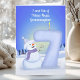 Bright winter joy fills this 7th birthday scene as a cheerful snowman shows off the tall snowy “7” sculpted just for your daughter’s big day. Soft, leaf-shaped trees frame the background, bringing a gentle seasonal touch to the artwork. The cool winter tones, playful textures, and warm expression create a sweet, memorable design perfect for granddaughters who adore snowy magic. A lovely choice for anyone searching for a whimsical winter 7th birthday card for a special girl.