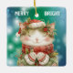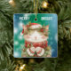 Here's a pretty Christmas ornament for that special granddaughter, daughter, or niece! On the front an adorable kitty cat is dressed in a red pattern hat, scarf, and mittens. The cat holds sprigs of holly with red berries. A green and blue bokeh background holds white text that says "MERRY BRIGHT". The back of the ornament has the same bokeh background with your custom text. It's personalised for her, and easily adapted for a gift from anyone; just change the text.