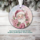 Here's a pretty Christmas ornament for that special granddaughter, daughter, or niece! A classic image of Santa Claus is dressed in pink, and peeking out of a bouquet of pink roses. The image is placed on a pink and lavender bokeh background. The back of the ornament has the same bokeh background with your custom text. It's personalised for her, and easily adapted for a gift from anyone; just change the text.