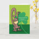 Wish your granddaughter a shamrock full of luck on St. Patrick's Day! A cute monkey is showing you just how much that luck really is!