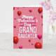 This Valentine's Day card has a soft pastel pink background filled with floating balloons. In the middle, there’s a deep rose-pink rectangle that draws your eye right away. Inside it, the words “Happy Valentine’s Day” appear in smooth white cursive-style lettering across the top. Just below, “GRANDDAUGHTER” is written in white, all-capital letters in a simple sans-serif look. Around the message, red round balloons and shiny fuchsia heart-shaped balloons rise upward with thin, curly silver-white strings. The balloons look glossy, like light is reflecting off them, and they’re spaced out to feel light and airy. It’s a sweet way to show love and closeness, especially for a granddaughter who means a lot 🥰❤️, and it’s a friendly way to share Valentine’s Day sentiments.