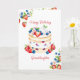Personalised birthday card for a granddaughter. Cute watercolor style ai illustration of a whimsical vanilla cake full of flowers, blueberries, strawberries and whipped cream. Pretty birthday card for her, a friend, grandma, aunt, sister, mum, daughter or granddaughter. Pretty feminine birthday card. This one says for Grandma but you can edit text in the personalise area.