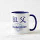Grandfather in Chinese characters/symbols with a blue dragon design. Text is navy blue. Handsome China adoption gift for Grandpa.