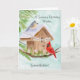 This hand-painted watercolor features a charming birdhouse adorned with a Happy Birthday banner, as a tufted titmouse and a cardinal stop by on a crisp January winter day. Soft seasonal details and gentle colors create a warm, thoughtful scene, making it a lovely birthday piece for Grandfather who celebrates in January.
