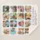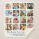 Create a personalised keepsake sherpa blanket for your grandma featuring 16 rounded square frames holding photos of her grandchildren, family, pets, travels or other special memories and two lines of customisable text, such as "We Love You Grandma" and the names of her family members.
