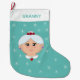 Grandma and snowflakes on light teal Christmas Stocking. Granny text can be personalised.