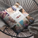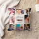 Modern chic grandmother pillow featuring 8 family photos of the grandchildren, the cute saying "this grandma belongs to", rustic boho burgundy & blush watercolor florals, and the grandkids names.